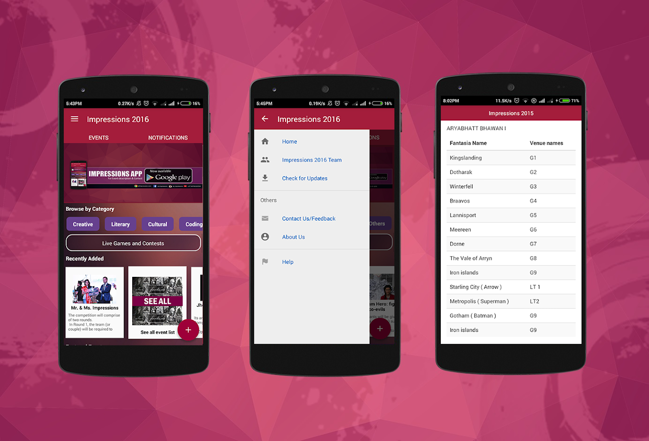 This app was launched just before Impressions 2016 which is the Annual Cultural Fest of Jaypee Institute of Information Technology, Noida